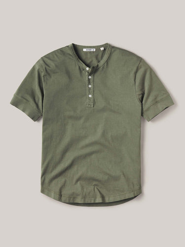 Moss Venice Wash Pima Short Sleeve Curved Hem Henley