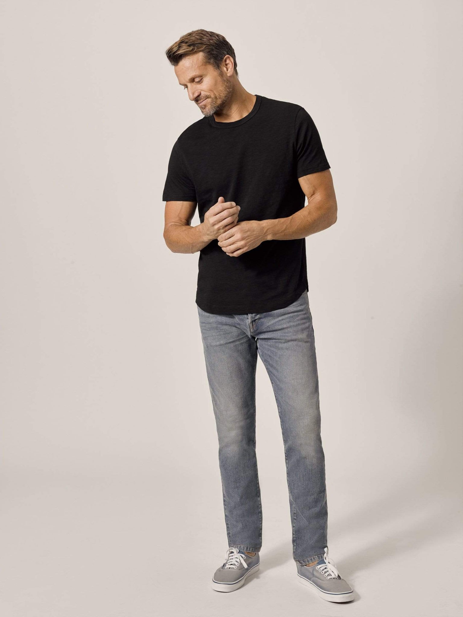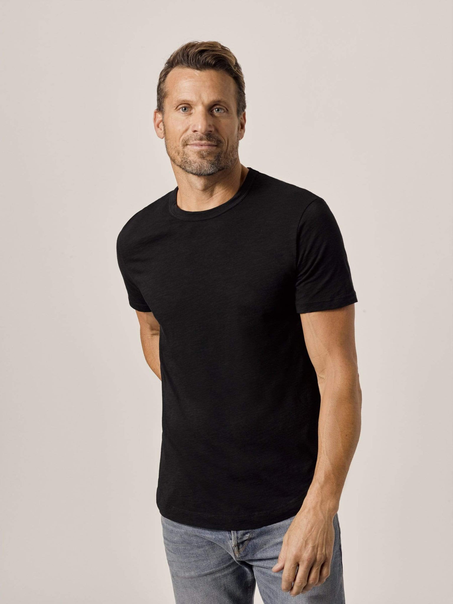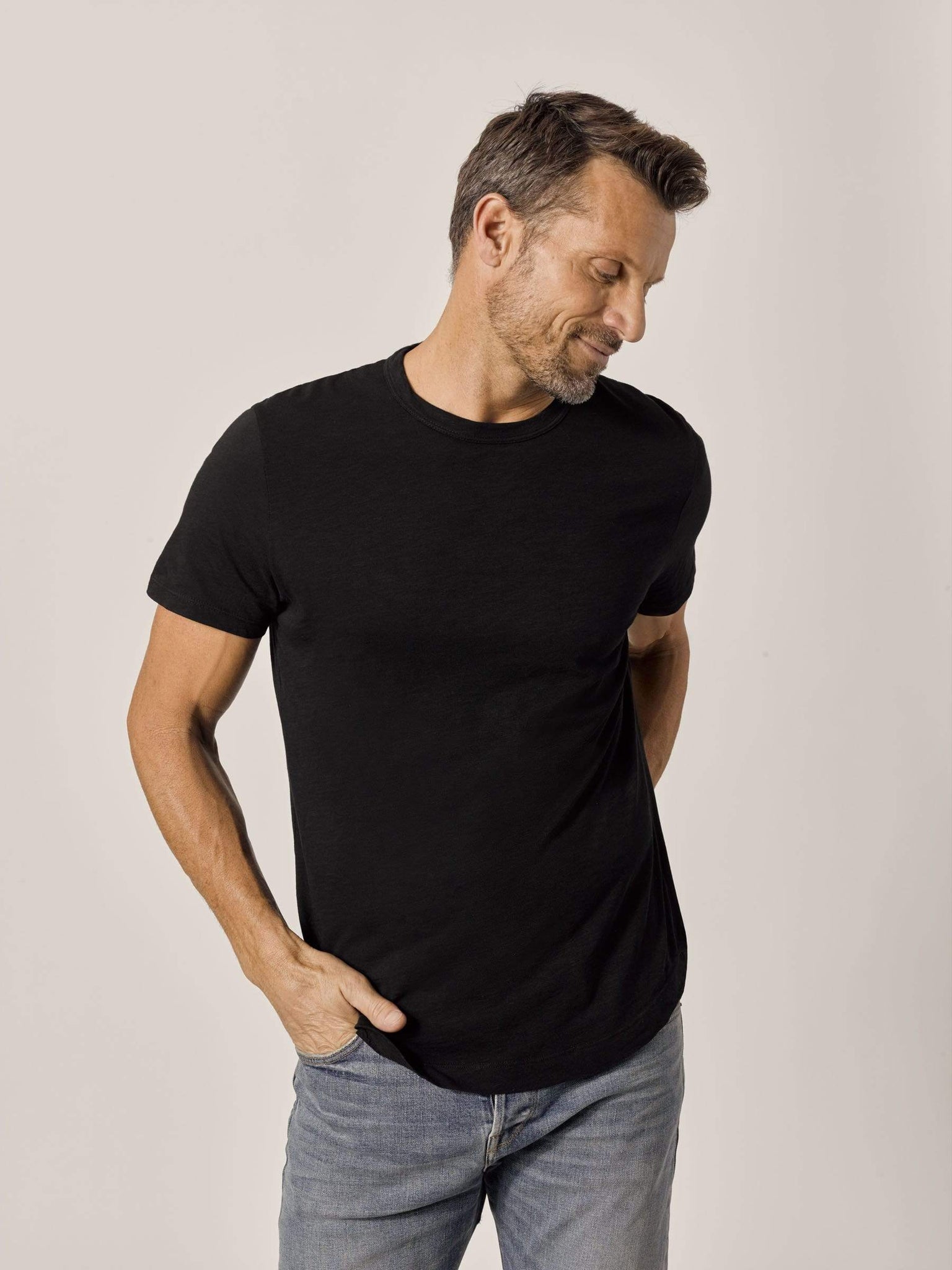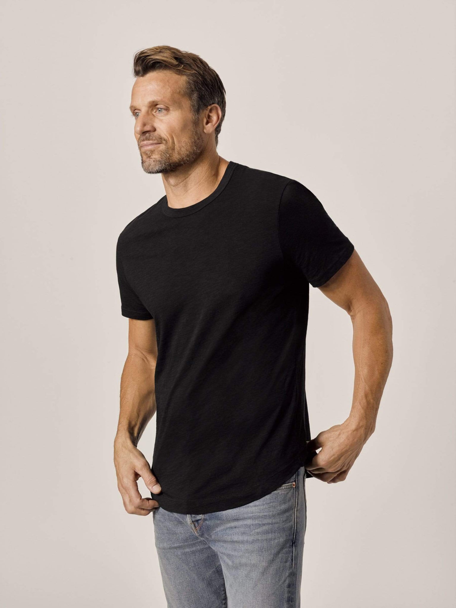 Our slub curved hem tee is built from beautiful 100% slub cotton. Slub is a lightly textured fabric made on small batch, low-tension looms. The neck opening leaves room to breathe, while the rounded shirttail lends a tailored look to an everyday essential.