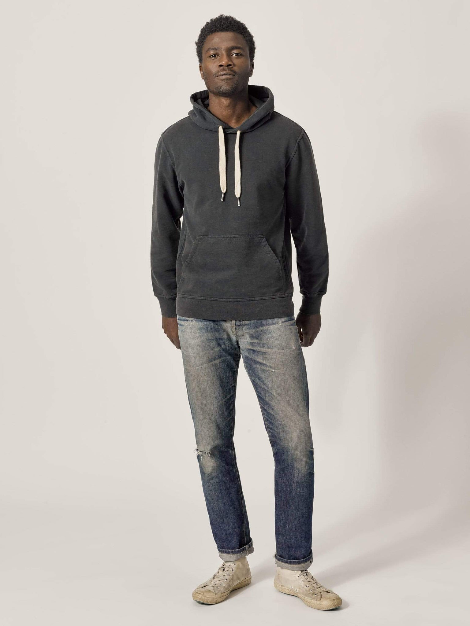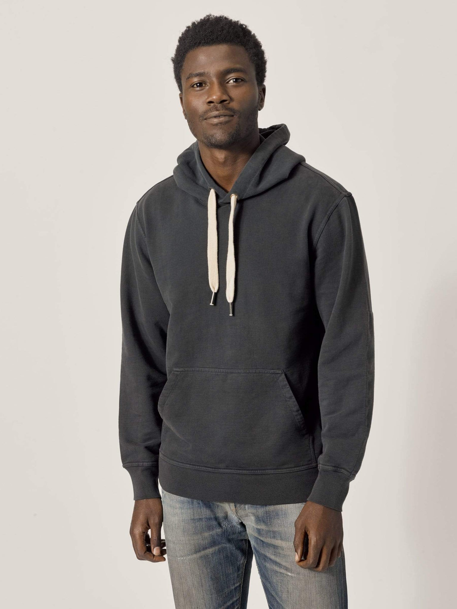 This Brushed Loopback Hoodie provides reliable warmth and durable construction under the harshest conditions. The outside of the fabric is soft and flat, with a looped interior that’s created with tiny metal bars in the knitting process. Loop terry has lots of surface area, so it stays warm, but the loops distance the sweatshirt from your skin to promote air circulation. The inside is looped, so the cotton fibers open up and really stays warm. The side seams are constructed with a durable flat lock stitch, with twill tape for added fortification. We chose a strong double needle ‘caballo’ stitch on the cuff, pocket, and hem, that washes down beautifully. This hoodie will look even better a thousand wears down the road.