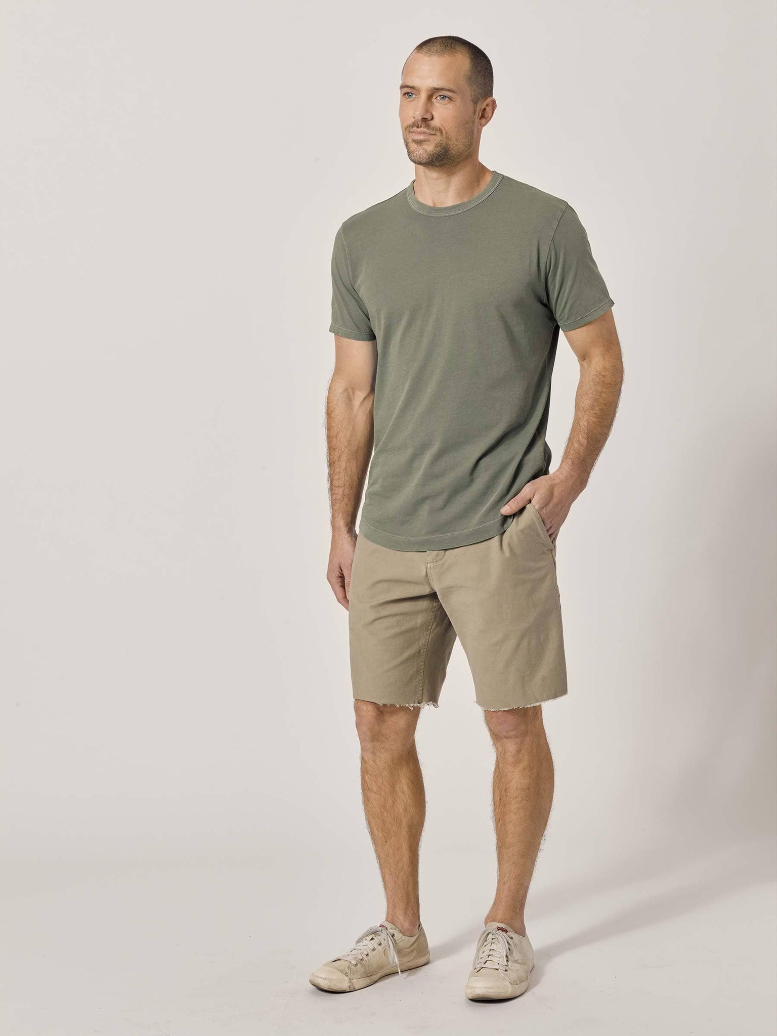 If you like our Broken Twill Trouser, this is the short version. The raw hem hits just above the knee for a tasteful length you can wear all summer. Cut from durable, long-strand cotton, the fabric is sanded on both the face and the self-side, opening up the fibers for total softness. 2% stretch means you can step out of a boat or tie your shoes without ever having to worry about a split.