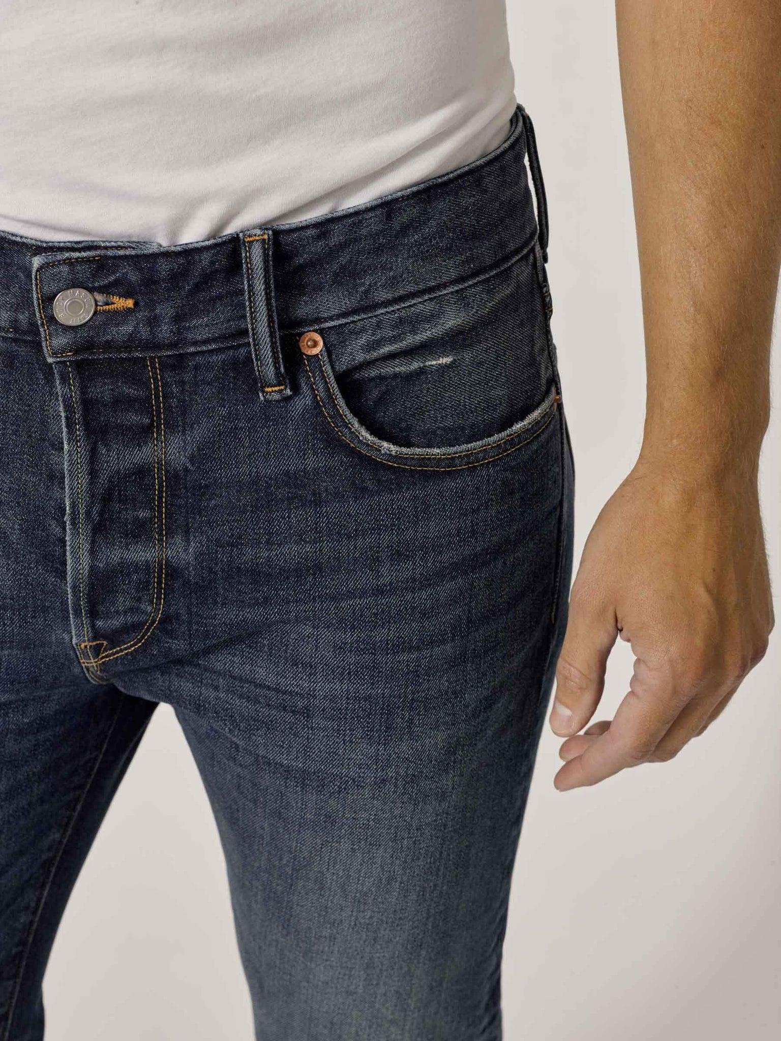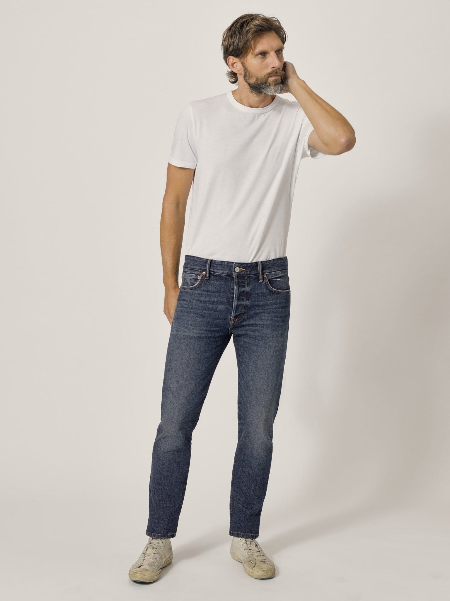 A slim fit jean, cut from Japanese denim with a hint of stretch. This subtle, medium wash approximates a few years of solid wear. A great jean for those who value the heritage and character of small batch denim, and the immediate comfort of a washed down stretch jean.