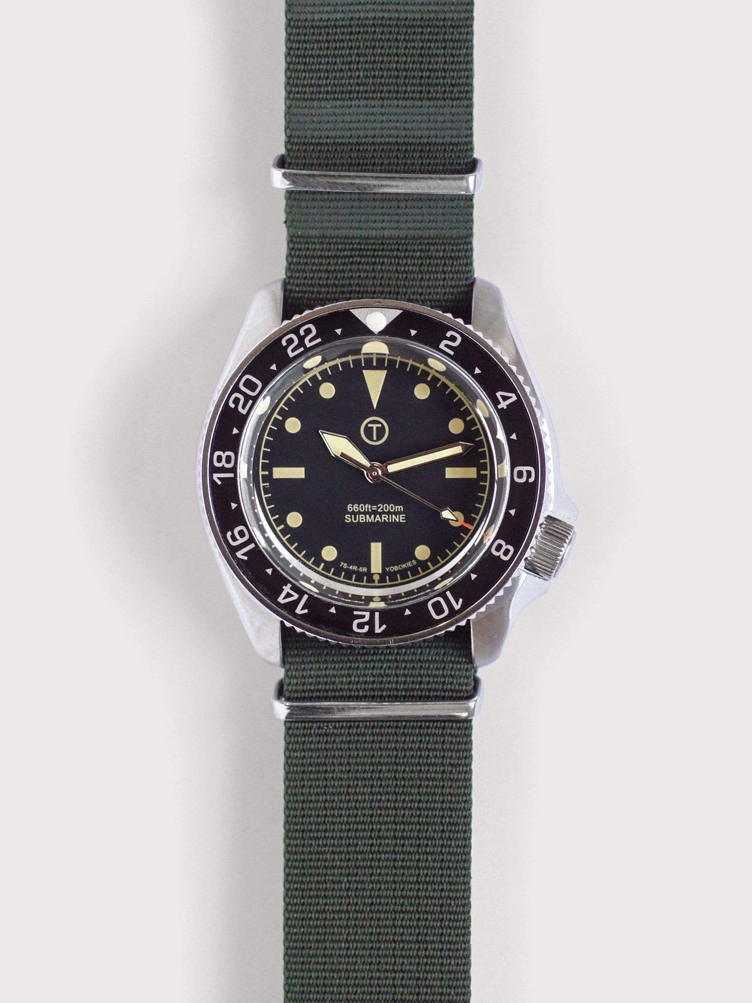 - Band: Phoenix G10 NATO nylon strap in Black and Military Green