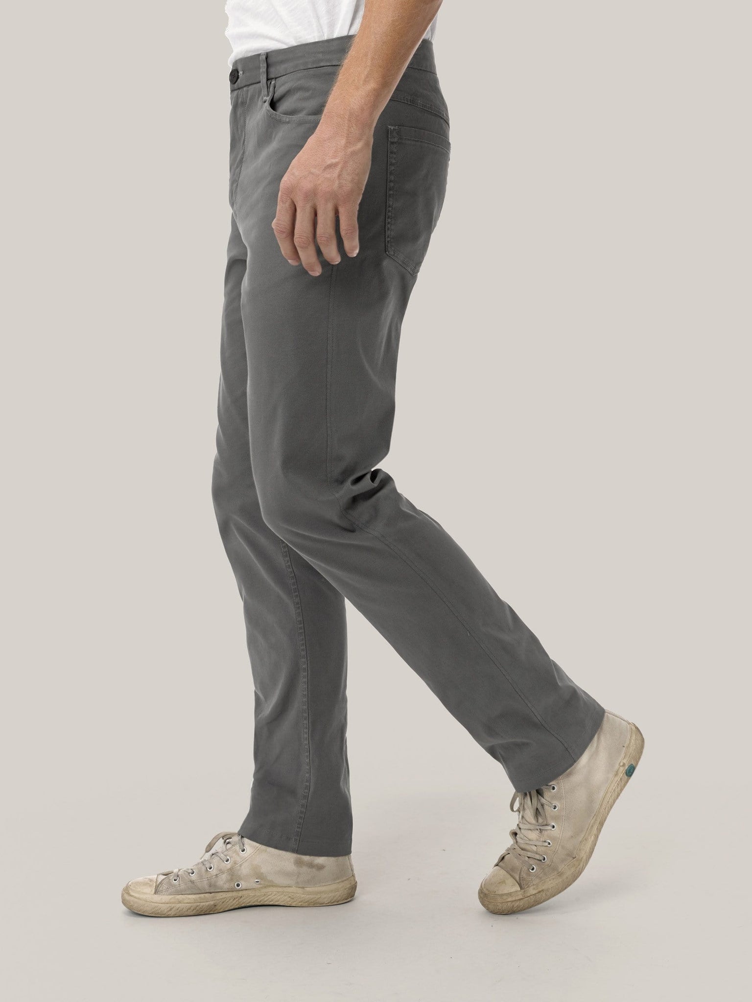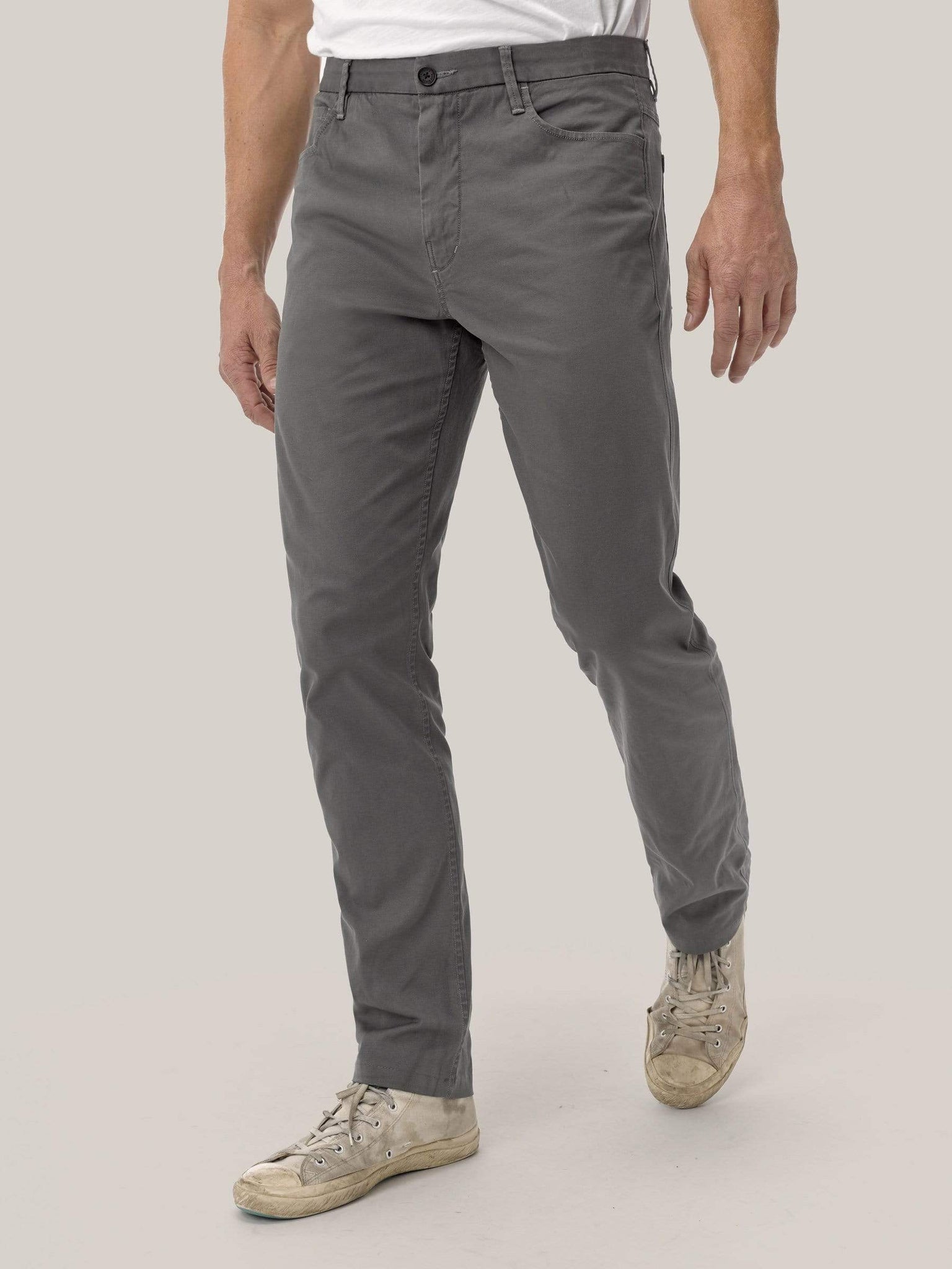 Cut like a blue jean; feels like a chino. Cotton canvas with a pinch of stretch makes this damn near the most versatile pair of pants we’ve ever made. We’re obsessed with canvas—it breathes a little easier than denim—and it's garment washed for extra softness.