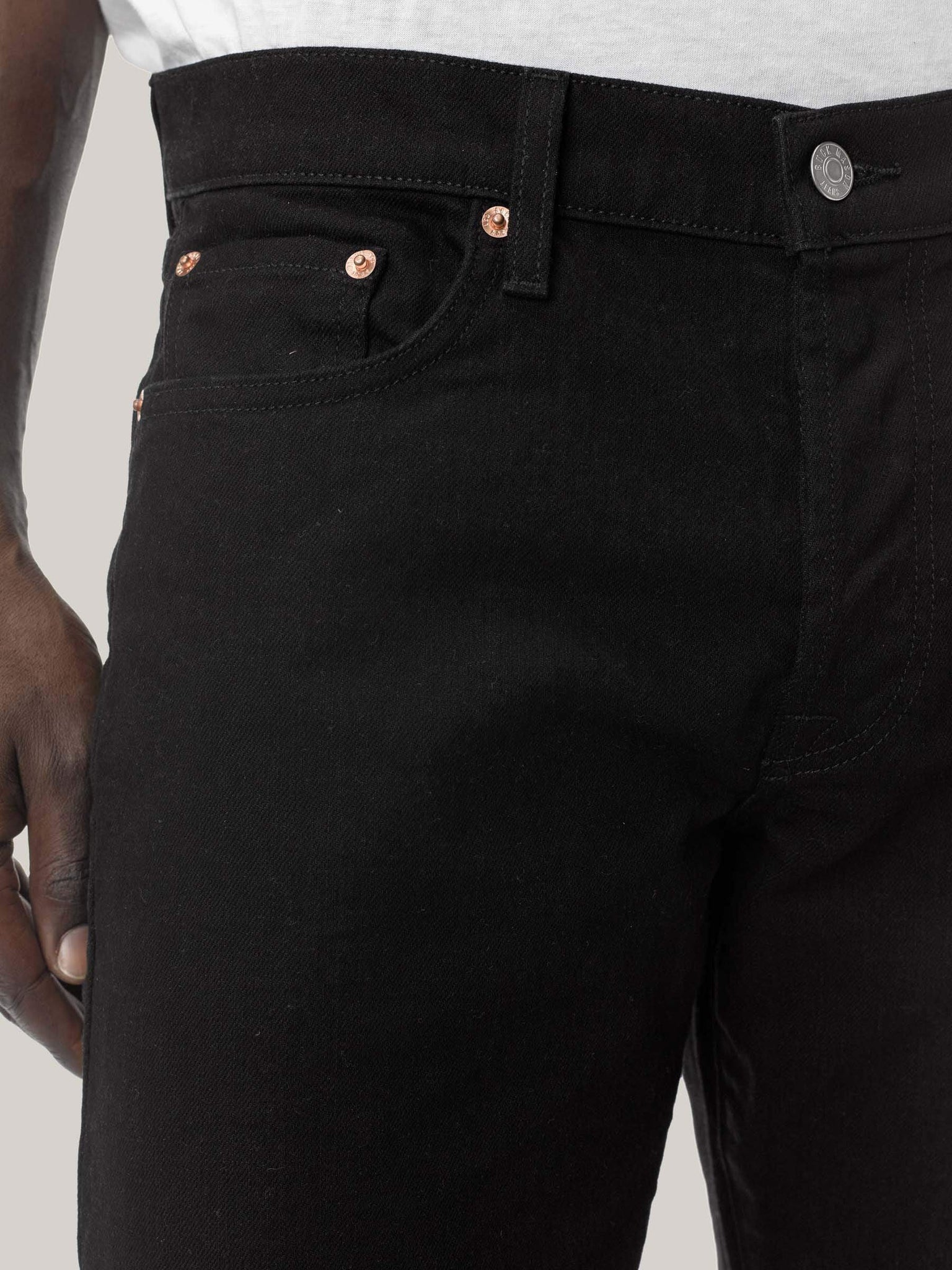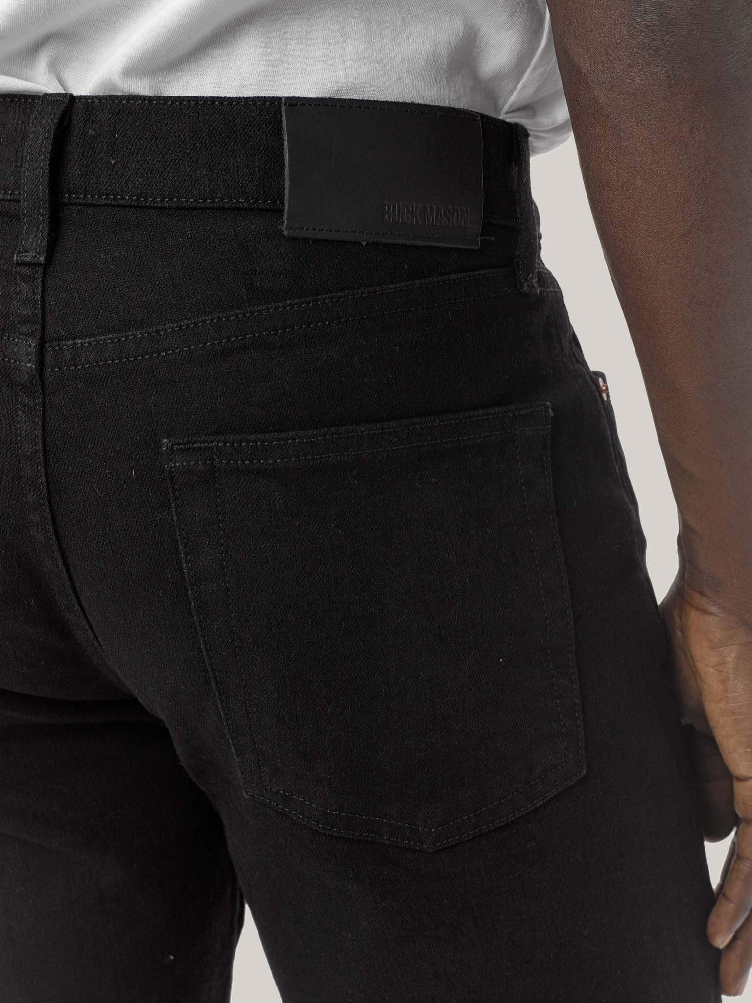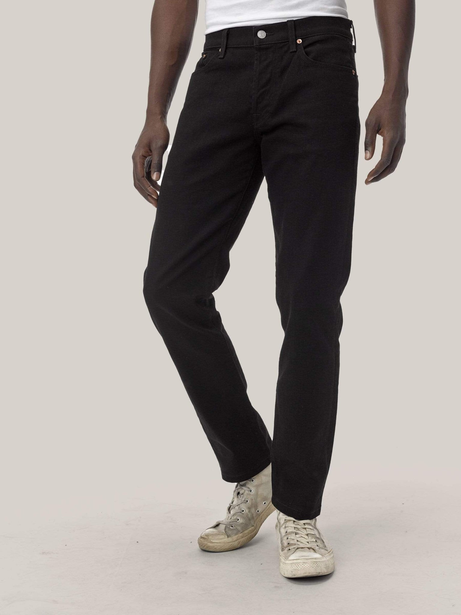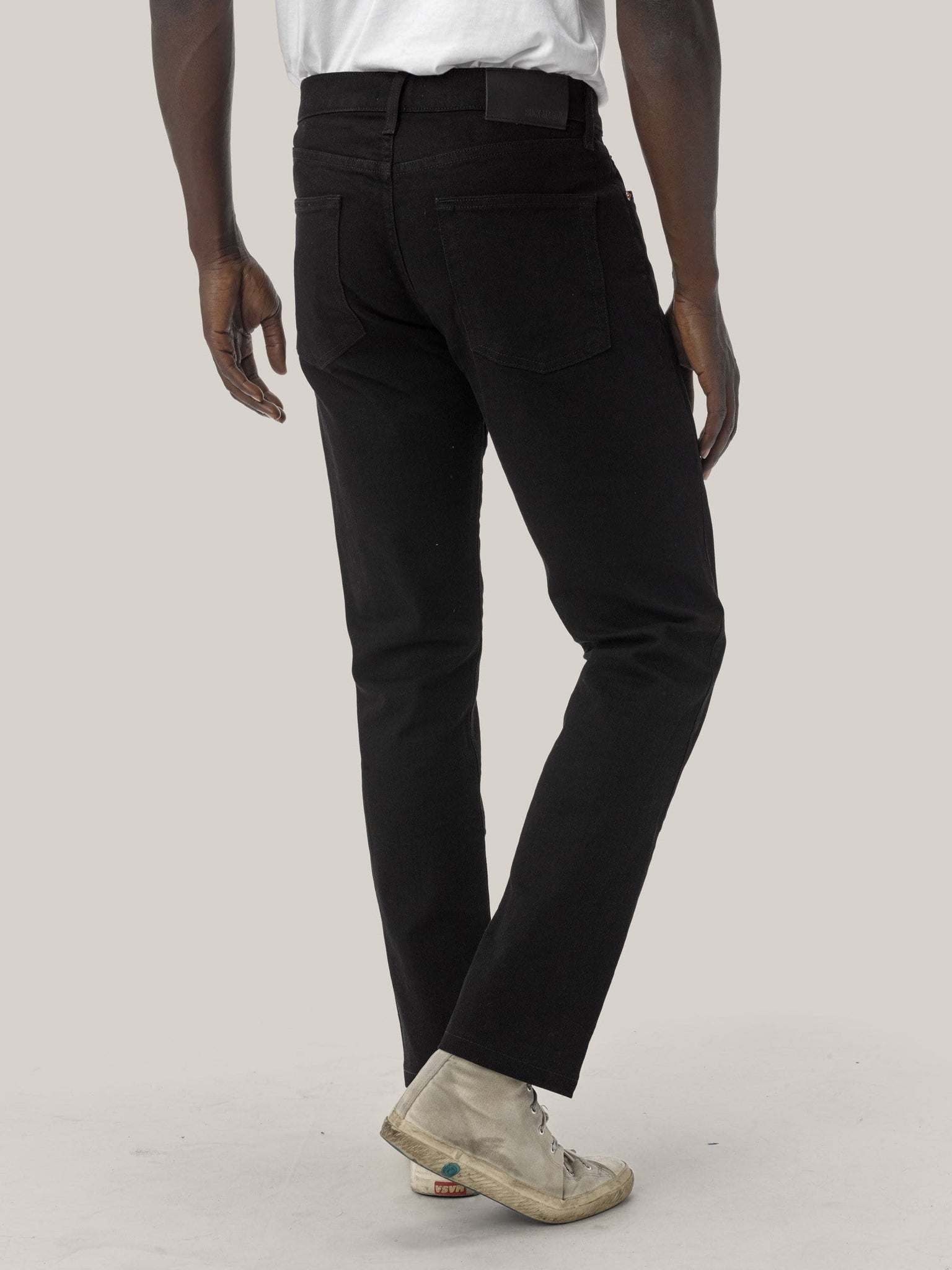 A comfortable stretch jean with the weight of our Raw Indigo Denim. You ever have that problem where your black jeans turn grey over time? That will never happen with these jeans. The yarn is dyed black, and then we over-dyed the finished jean. These jeans will stay pitch-black forever. Features our button ‘safety’ fly, nice tonal stitching, and our classic branding patch.